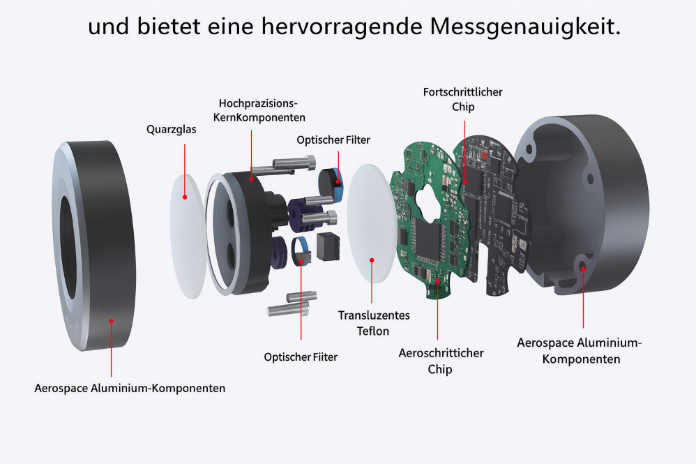 Mit dem EVi 1977 erhalten Sie ein multifunktionales Lichtmessgerät, das speziell auf die Anforderungen der zerstörungsfreien Prüfung ausgelegt ist. Durch die gleichzeitige Erfassung mehrerer wichtiger Messgrößen bietet es maximale Sicherheit, Effizienz und Nachvollziehbarkeit in Ihrem Prüfprozess.